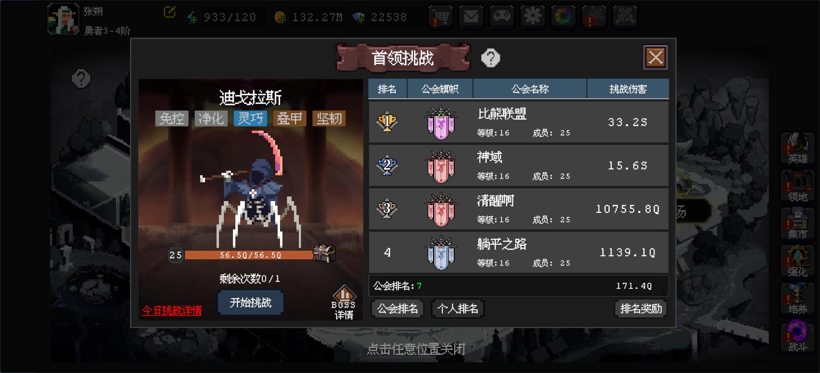 公会全员活跃,每天上午就能做完砍价,有微信群,群内氛围良好,大家可以互相交流游戏分享攻略。因为公会boss有排名的原因,收人稍微卡一下战力,有想加公会的朋友截图你的主c面板发在评论区就行,我会回复你的。 直接加我绿泡泡也可以:Tiamowsjy