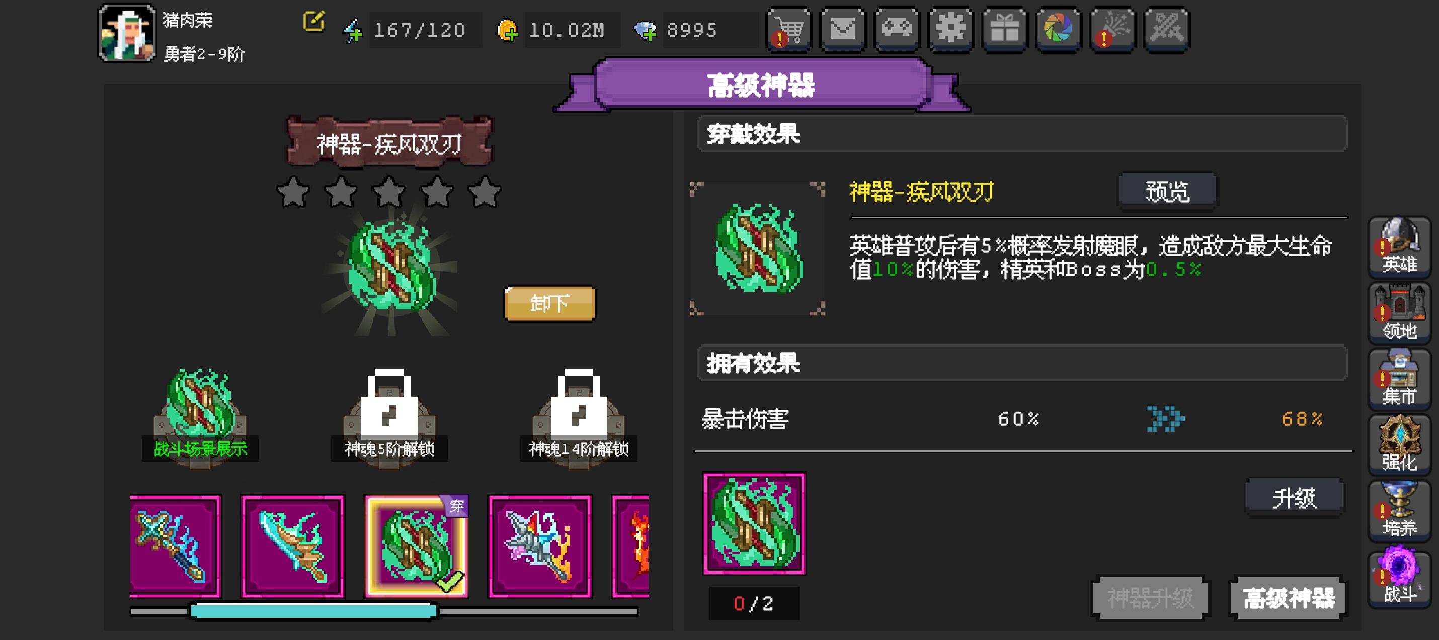 有没有大佬教教我怎么提升啊,神鹰带的4连击+4暴击,其他四个辅助大都是神鹰淘汰的拿来散搭,目前无尽600层还能打,血缘卡在25层过不去