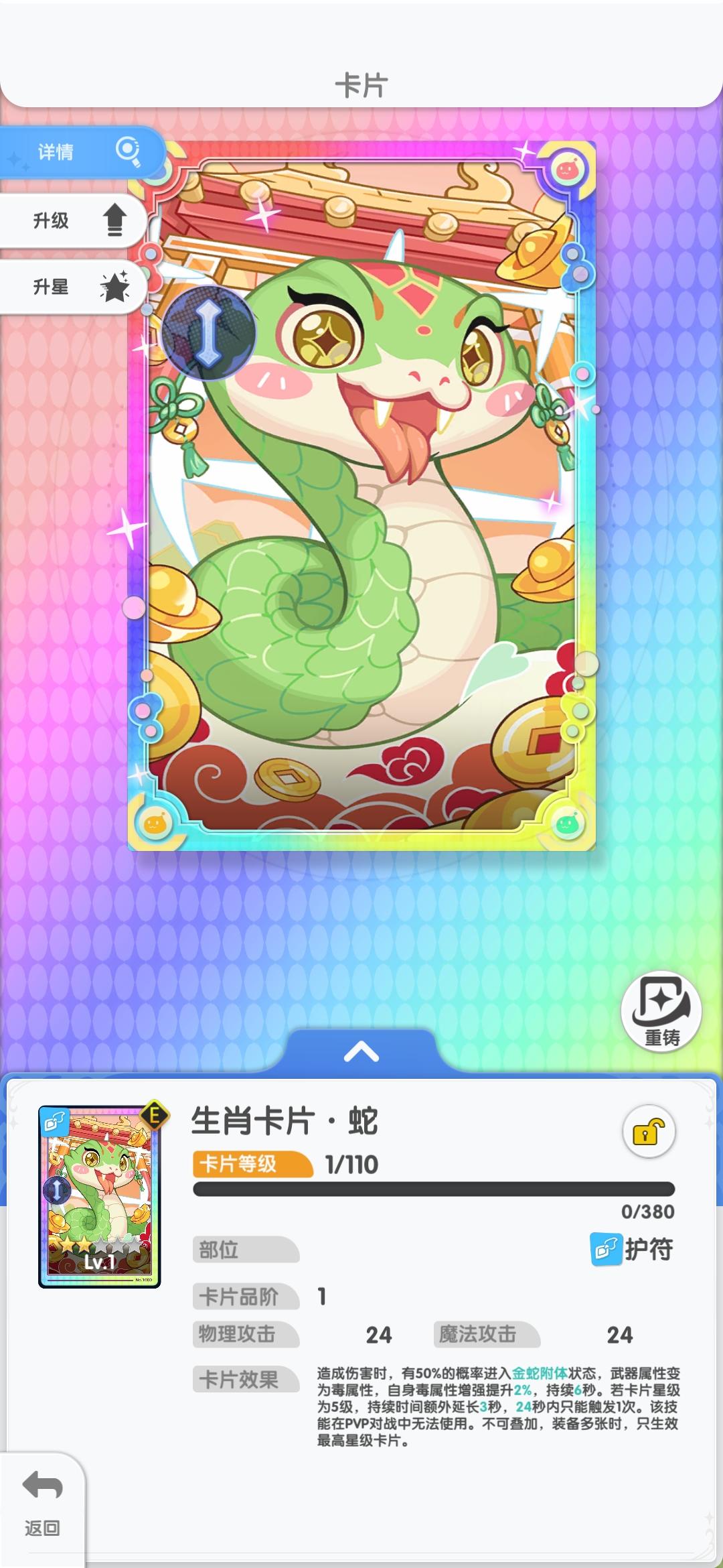 续接上篇卡片(这里只推荐普通卡片)武器:白鼠-螳螂(力量)护符:盗虫-帕莎纳(攻速流) 邪骸海盗-人鱼(急速)饰品:玛勒盗虫-苍蝇-诺可伊(攻速) 短剑骷髅-剑鱼-森灵(灵巧急速) 疯兔- 魔锅蛋-狼(暴击暴伤)盔甲/披肩/鞋子:体质为主(本人资源有限并为这方面下手不做参考)个人主观提示1:在资源有限的情况下优先升级武器/护符/饰品。个人主观提示2:其他用不上的卡卖又卖不出去,