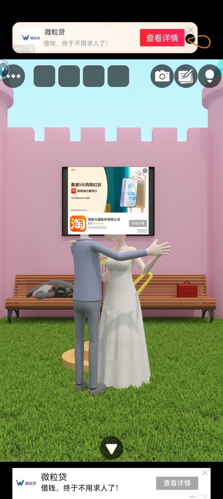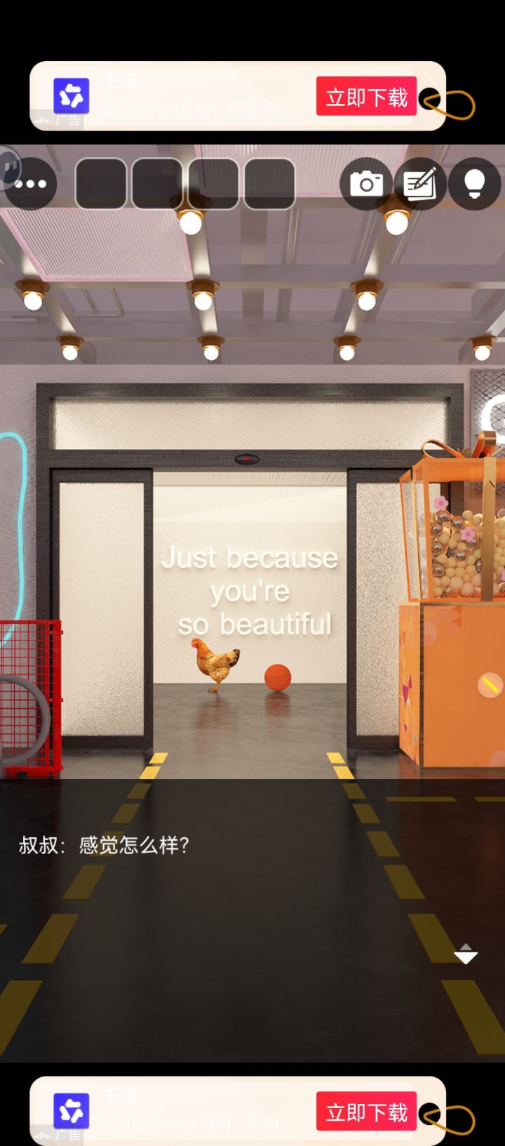 插屏广告也很有创意,做了很多空白的画框放广告,一点也不影响玩游戏,就是关不掉。