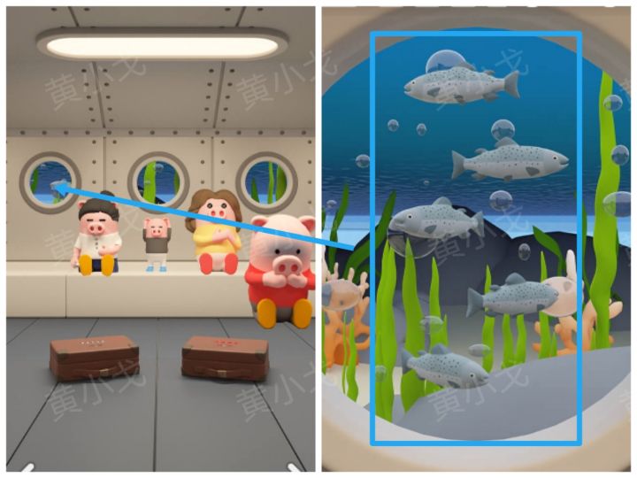 |[乘客舱]1.查看左侧窗户,获得线索🔶窗外鱼的朝向:左右左右右2.点击中间的窗户,查看收音机上的画面,获得线索🔶鱼摆成的字母:seac3.点击四只小猪,观察他们的动作🔶从左到右:捂肚子、捂耳朵、捂心脏、捂嘴巴……✄……✄……✄……✄……✄……[驾驶舱]4.点击座椅上的纸箱上的密码锁,根据[乘客舱]窗外的鱼的朝向线索,调整密码锁🔷左右左右右5.打开纸箱,获得【遥控器】6.