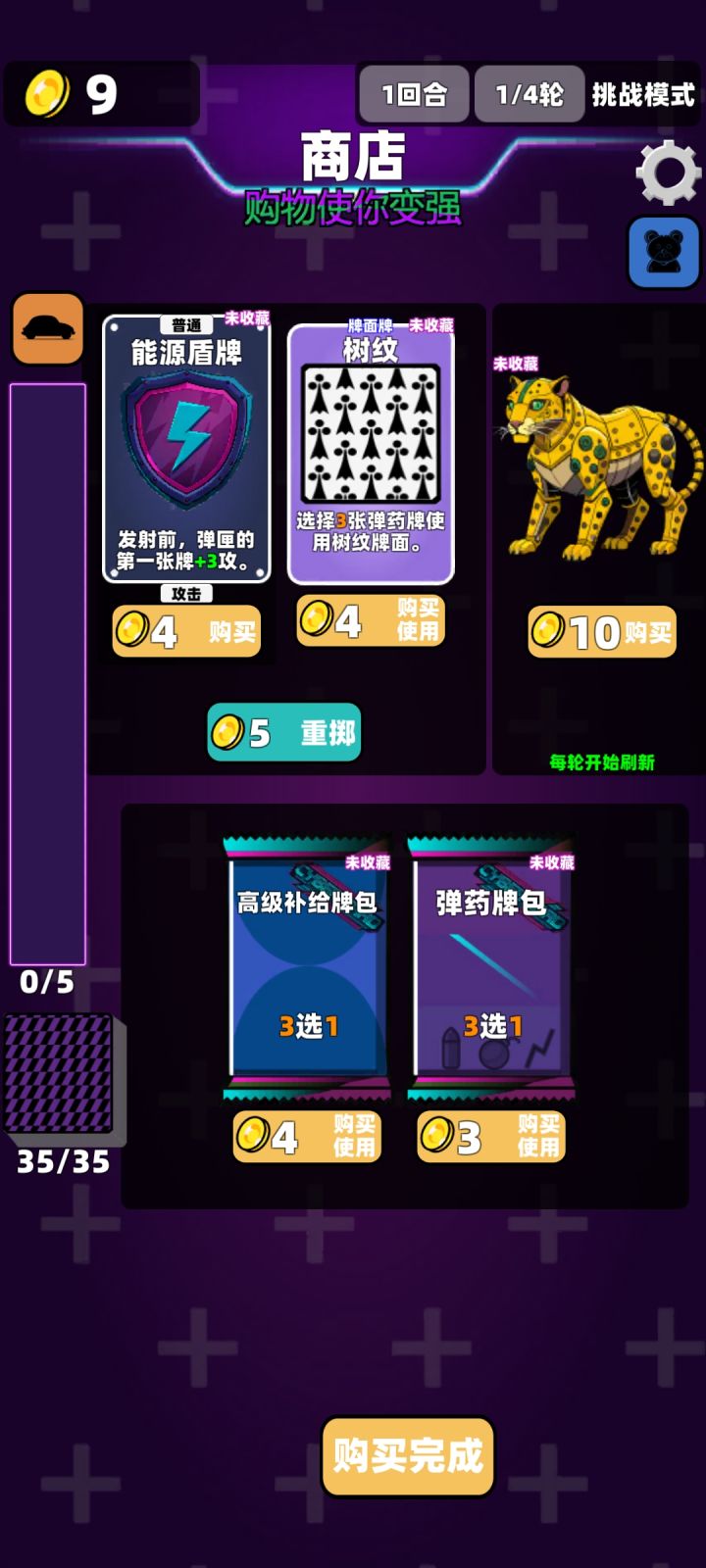 完成关卡后会进入肉鸽商店,内容和小丑牌基本一致,可以消耗金币购买卡牌增强,种类非常多,金币的统筹是核心策略点。
