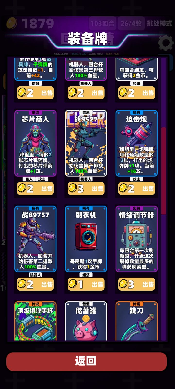 游戏养成都在局内,通过商店卡牌进行增益,随机性较大,能否打过有点看脸。