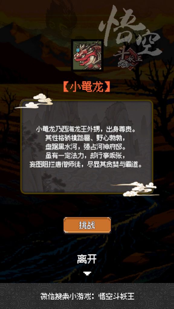 生来本是波中物,脱去原流变化凶,要问妖邪真姓字,前身唤做小鼍龙。推荐微信小游戏:#悟空斗妖王!# taptap传送门: https://www.taptap.cn/app/739600 #单机游戏 #发现好游戏 #每一帧都是壁纸