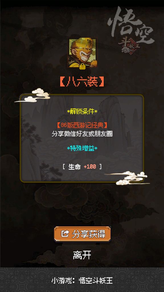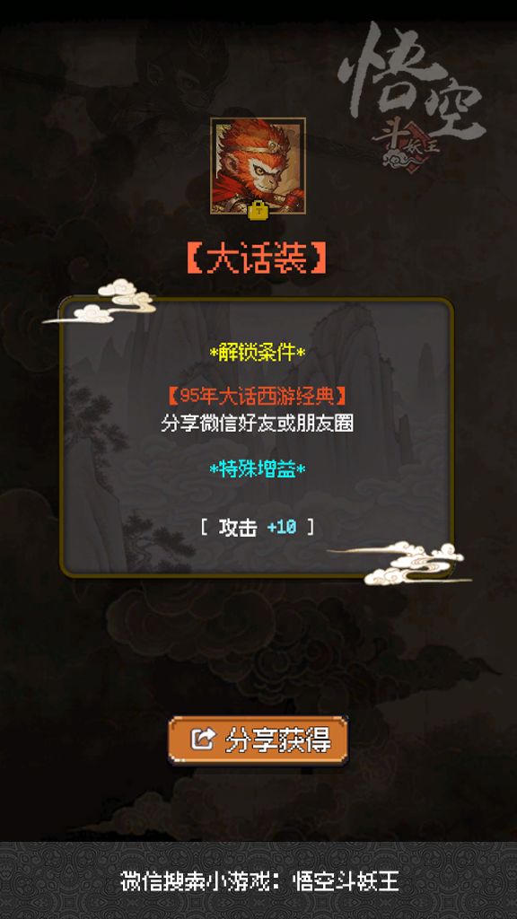 悟空本命皮肤“大圣装”,皮肤增益:[生命+50][攻击+10][防御+5],经典装备,分享即得!快来解锁!悟空斗妖王taptap传送门: https://www.taptap.cn/app/739600#单机游戏 #发现好游戏 #悟空斗妖王 #每一帧都是壁纸 #游戏杂谈