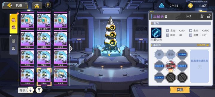 这个基因合成是伪随机,当合出三级技能基因的时候,或者颜色不对,或者技能不对。这个时候直接关闭应用,使用另一个设备或者模拟器登陆,你会发现你的合成并没有保存。此时你可以选择正确的颜色和技能基因进行合成,基本必出三级技能,结果不理想可以继续退,重复以上,直至获得金色3弹雨按钮,红色3复仇钻头,蓝色3强袭电话等等。注意每个名字的4级基因相互独立。