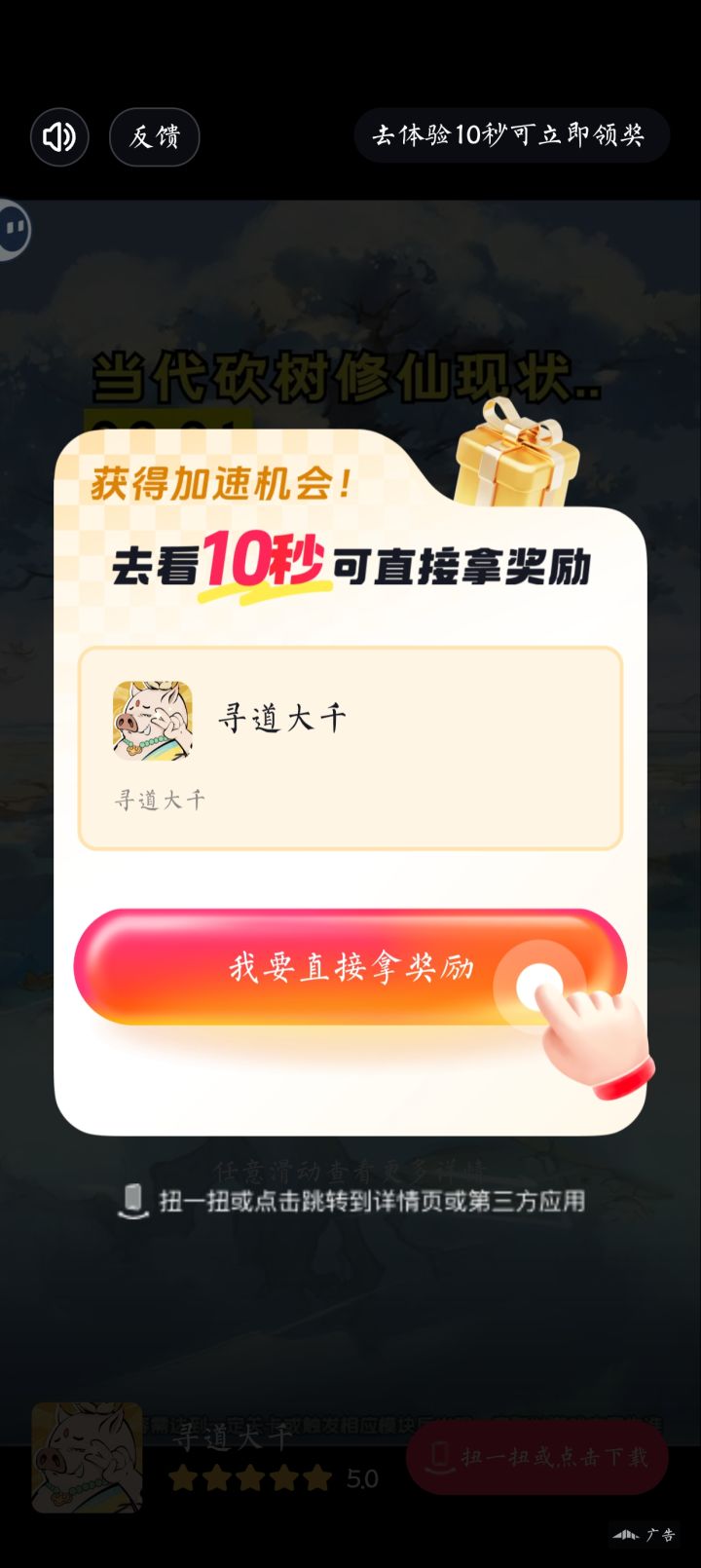 广告没法看,还必须点击跳转微信小游戏运行足够时长才能获得奖励,真恶心,也许有关闭按钮但我没找到。就算有,也给你藏起来让你找不到。