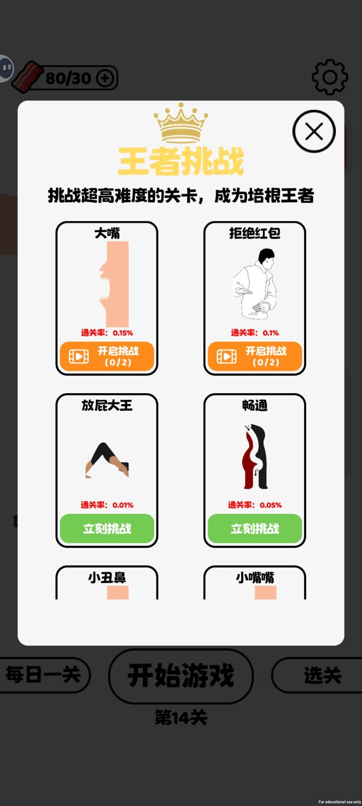太恶心了这种设置😓过几关就要设置个特别难的关卡让看广告跳过培根还特别少😓