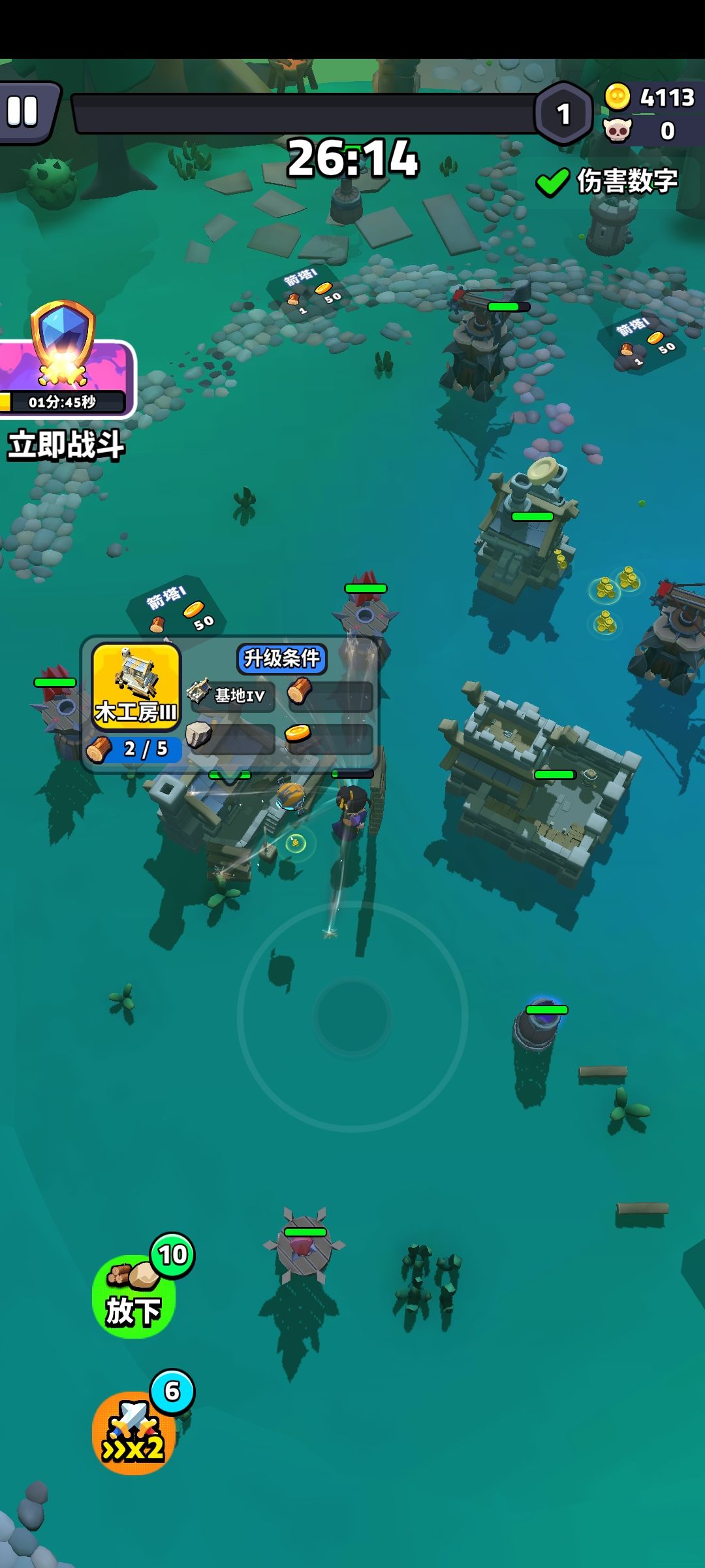 1.打的波次越多分给的越高,图中15波与30波的分差一下就能看出来了 2.击败数也就是击败怪物的数量越高分越高 3.通关时间,耗时越短分越高(前提是通关了) 4.资源,获得的金币、木材、石材的数量越多分越高 5.基地血量,最后一波结束保持住基地的血量就能拿高分 6.角色复活次数越少分越高 7.防御塔的数量与等级越高越多分就越高 开局攻略:前期简单利用角色自身的装备就能轻松解决怪物,先选防御塔的技能