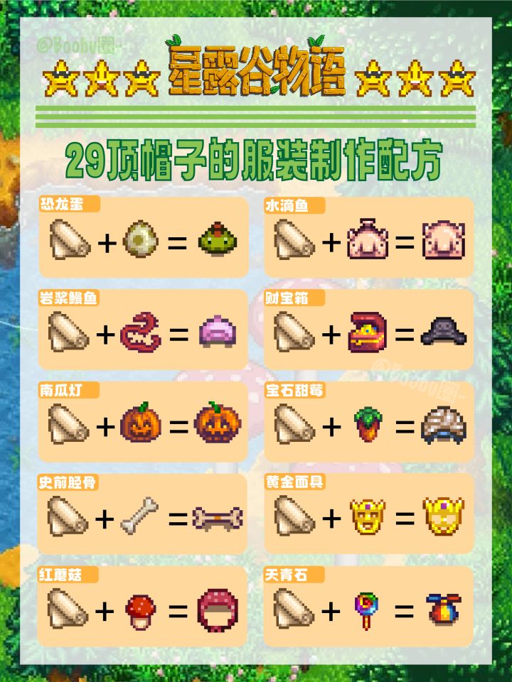 星露谷|盘点❷❾顶帽子的制作配方大全‼️
