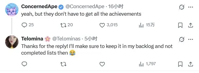 近日,有网友在推特发文表示所有玩星露谷的玩家是不是游戏进度达到100%才算完全通关?并开启投票选项,大多数人表示是。结果热度太高,把官方作者也吸引过来了,表示100%算!全进度,但不必达成全部成就,只要玩开心就好!#主机单机 #星露谷物语