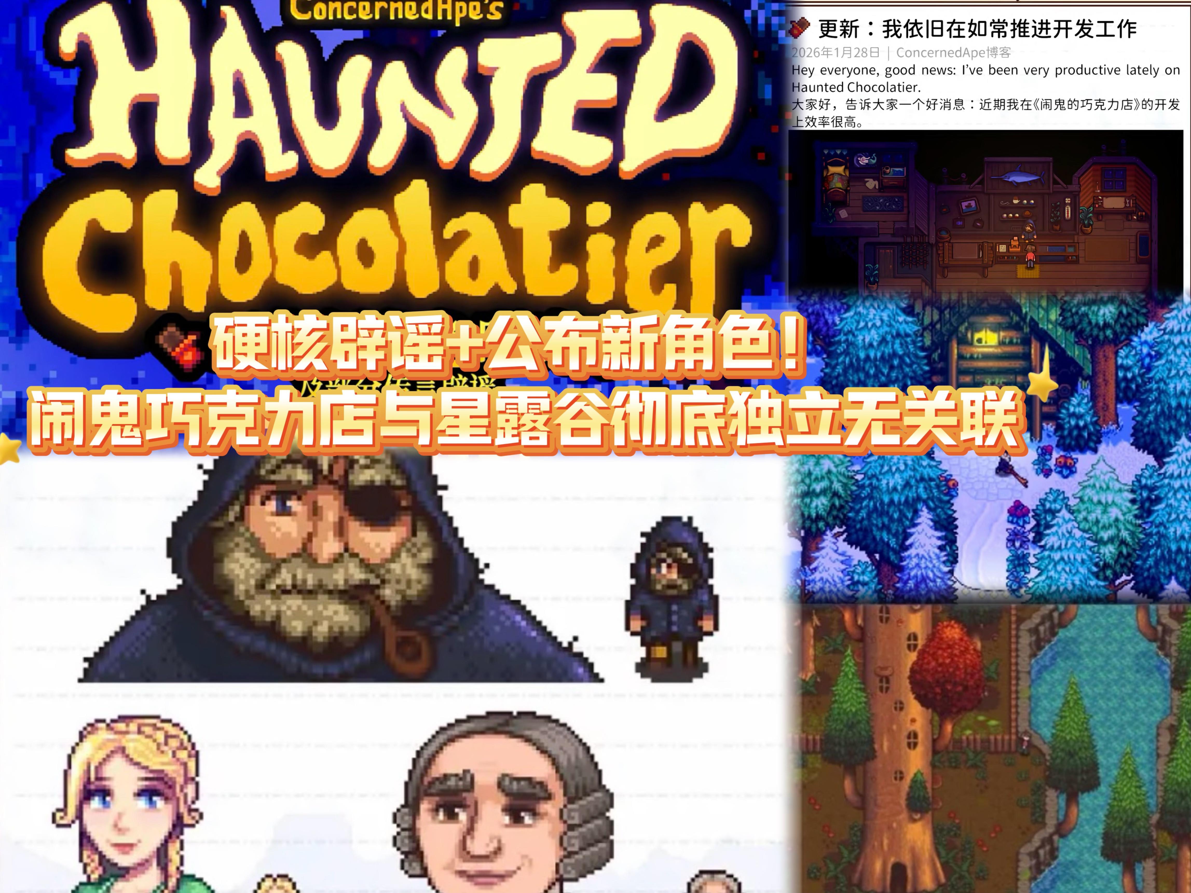 年度定心丸《星露谷物语》创作者Eric “ConcernedApe” Barone通过游戏官方网站发布重磅更新,不仅公开了《闹鬼巧克力店》(Haunted Chocolatier)的三位新角色立绘,还针对近期流传的游戏“烂尾”“并入《星露谷物语》”等不实传言进行集中辟谣。暗黑版星露谷这款备受期待的独立游戏,源于ConcernedApe在《星露谷物语》成功后的创作野心。2016年《星露谷物语