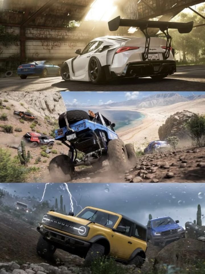 墨西哥开放世界(系列最大)• 地图比前作大50%,地貌反差极强◦ 活火山、雪山、热带雨林、沙漠、玛雅遗迹、海滨、都市• 动态季节+极端天气:每周轮换季节;沙尘暴、热带风暴、暴雨、闪电• 全场景可驾驶,无空气墙,自由探索🚘 车辆与改装(超900款)• 覆盖超跑、复古车、越野、拉力、皮卡、摩托、古董车• 深度改装:引擎、悬挂、传动、涡轮、涂装、轮毂、宽体• 支持自定义调校+涂装分