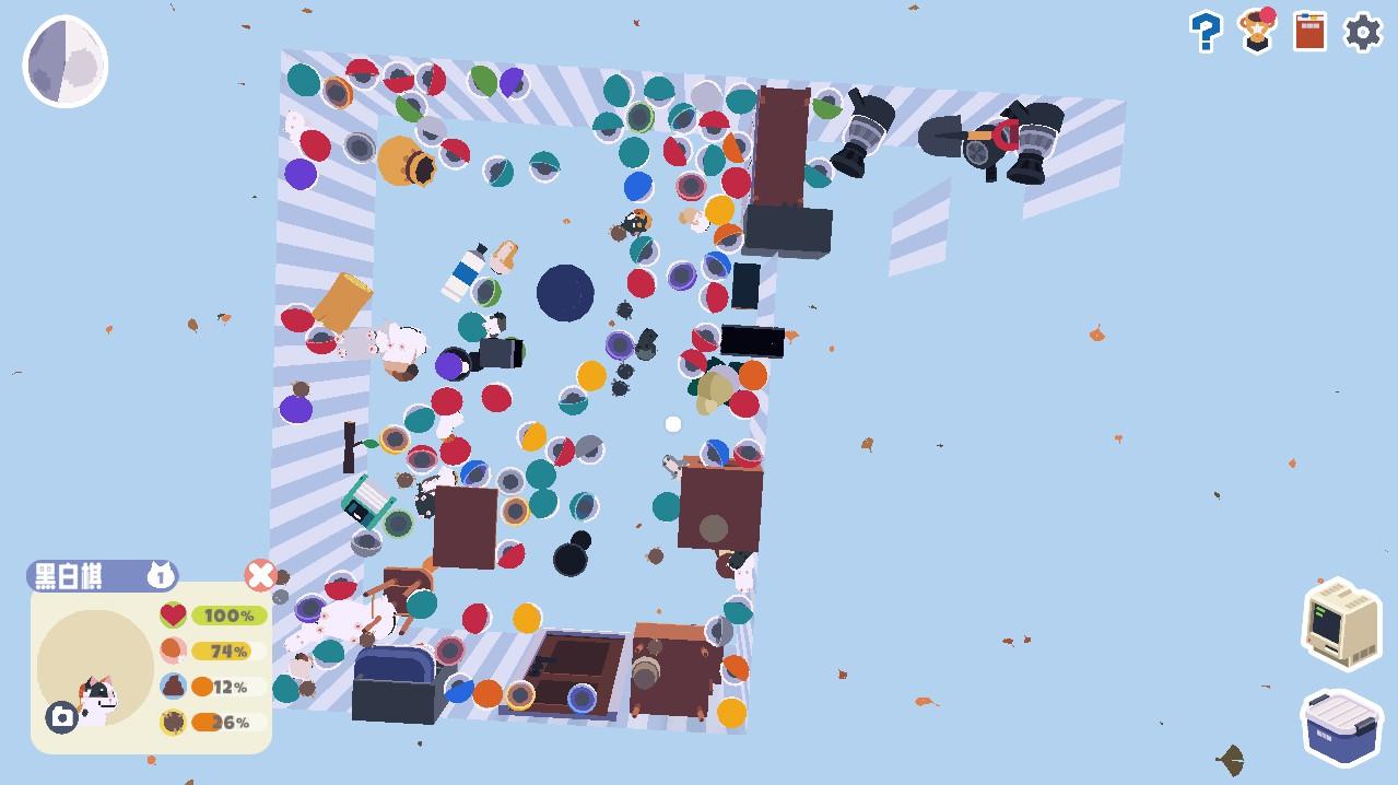作为养猫模拟游戏,在游戏中我们能看到猫猫的一举一动,玩耍、捣蛋或是缩成一团睡大觉,甚至我们能听见猫猫抓地板和打呼噜的声音。