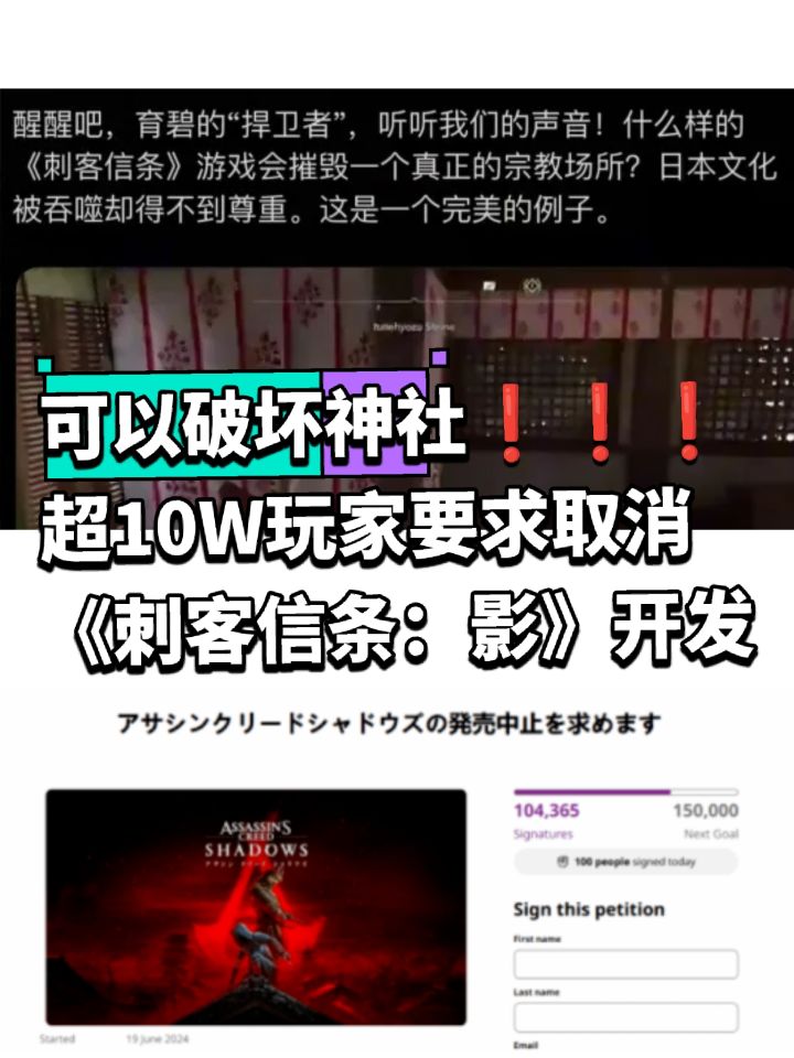 《刺客信条:影》在此前的游戏画面中就出现了帅气的处决,还能破坏建筑,好友试玩玩家在游戏中暴砍小日子,破坏神社等各种建筑。这样搞的日本玩家就不爽了,超10万玩家投票要求取消《刺客信条:影》的开发,百万玩家对游戏预告片点踩。而且还有日本玩家指出,游戏中不允许伤害白人,但却可以伤害日本土著。目前本作的预购销量已经突破30万,达到了当时《刺客信条:奥德赛》的水平,在PS平台上多个地区跻身销量榜前三名