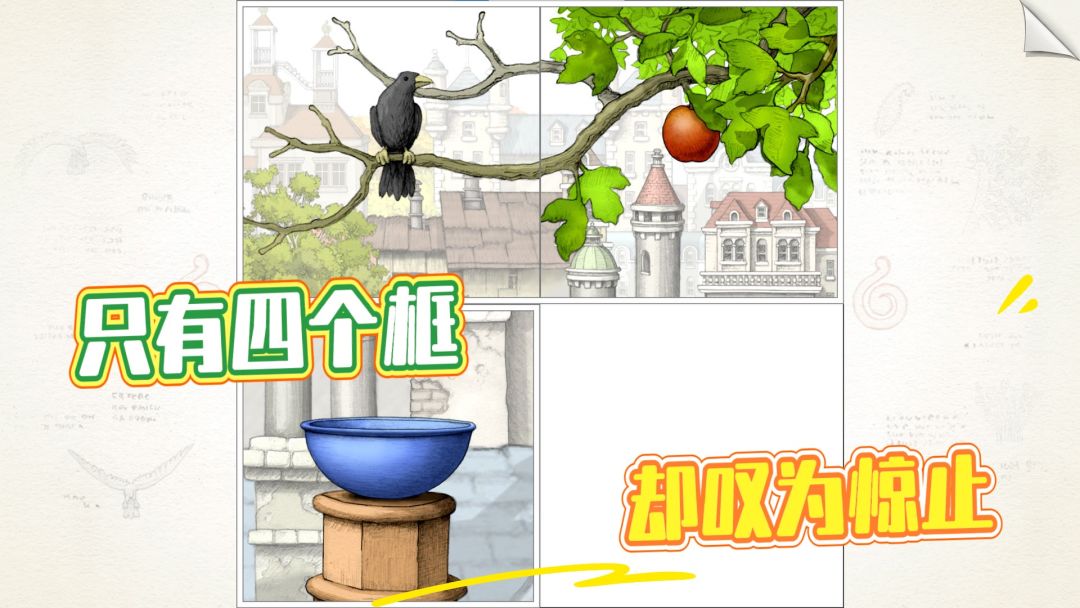 #pc游戏安利局 在四个画框中移动、缩放画面,用视觉错位解开谜题,沉浸于复古手绘风的世界中。