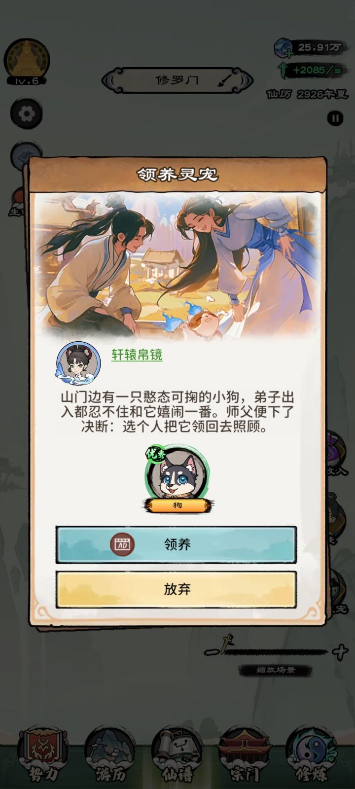 收徒弟养灵宠什么的都只能看广告,要不然只能拒绝,你多加一个成功率50%的选项我都不会只给一星