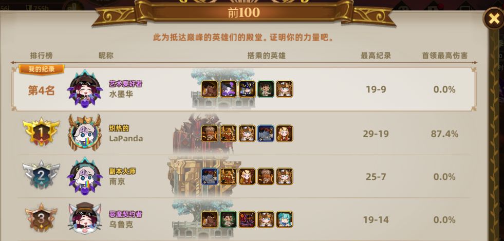 我是来自11服的大沐童鞋,作为一名信仰零氪,在开服七天后(今天,也就是7/24)我也是运气很好的成功偷榜拿下了第三(对不起原本的第三) 偷榜阵容为三星虎妞(翁古拉),五星男主(洛伊),一星新up(瓦伦塔恩),二星羊女(女主爱丽丝),一星男拳(库斐拉),接下来说一些我七天以来的通用思路 零氪的开荒思路为:在凌晨六点(什么时间点阴间什么时候进)进服,快速过任务,刷出新手任务和召唤任务后再开始使用钻石召
