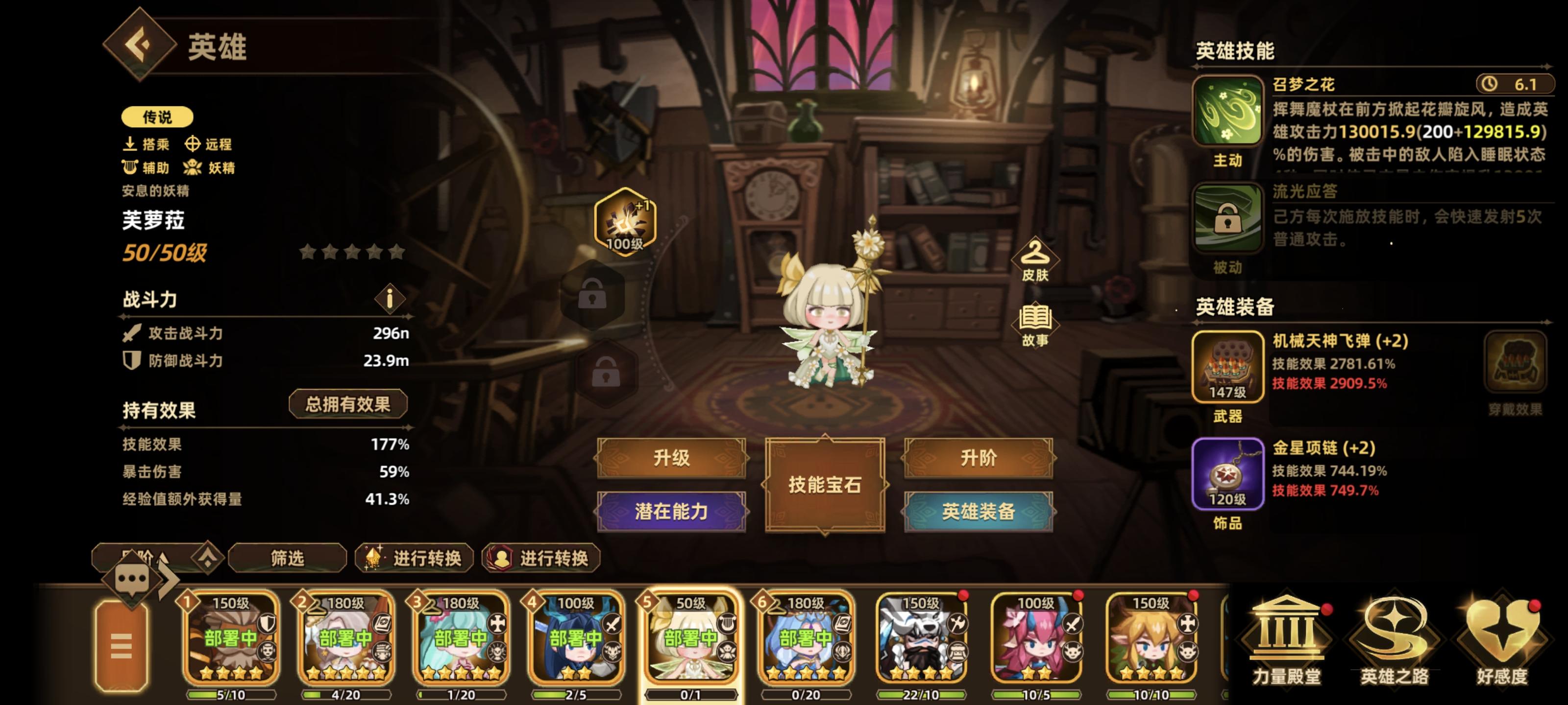 之前卡在44图,天一个大20n。上了1星芙罗拉之后,天一个大把BOSS秒了,伤害显示300n。这还不是加成的极限,因为BOSS被秒了。