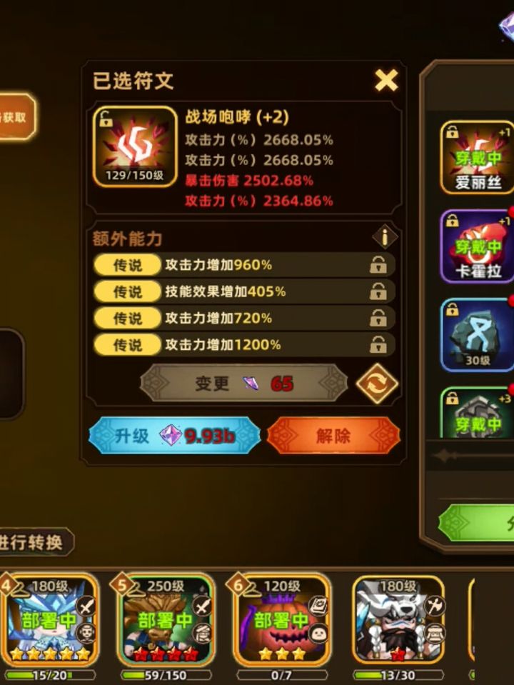 挂机金币37d/分→42d/分111-20的伤害15.9%→45.4%八人口我来力!