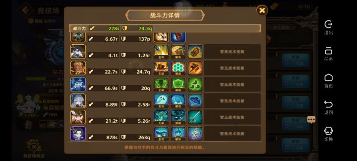 如图,竞技场,想捏个软柿子,结果被反杀,一看战力不对啊,研究了半天,换成和对方一样的阵容,对方战力基本正常了。下面这句“根据与对手的战斗力差异进行校正的数值”有点说法啊,不同的阵容导致对手战力相差百倍,真有你的。