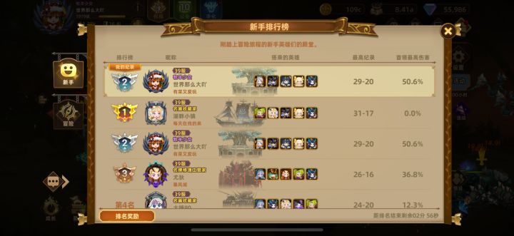26号晚九点开号,到现在不满48小时(包含睡觉时间)已经到了六人口。第一名大概率是个卡了2-9的老登,38服,开号时他已经26关1700级了,不知道七天内能不能追上。说实话,这个进度真的以前完全不敢想。——————————现在是30号,这个记录到这差不多就结束了。目前是第四天,推到58关。零氪七天的极限大概就是在六十多关接近七十关的样子。因为是小号的原因,这个号图鉴基本没怎么刷(不想