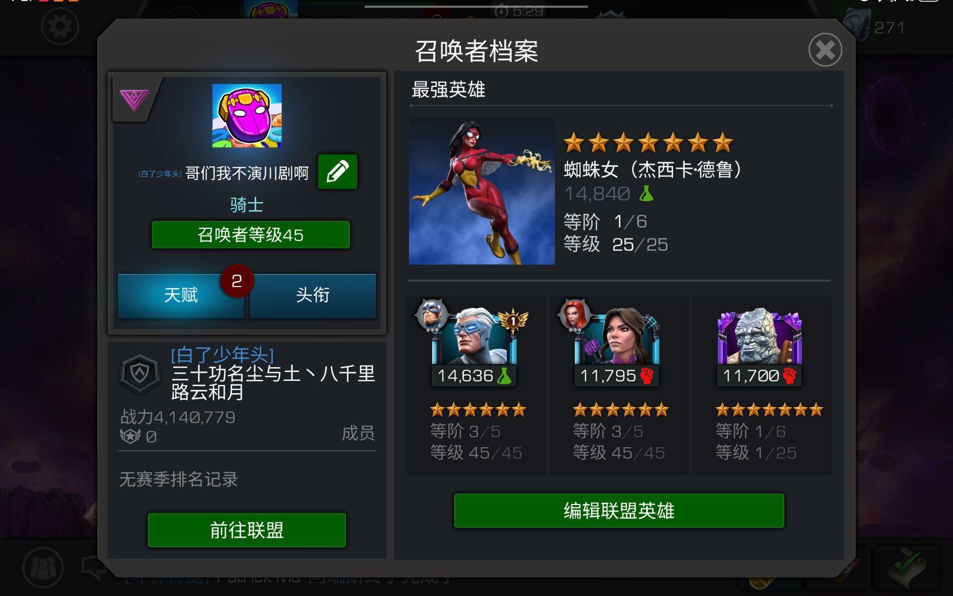 ⭐星,这一颗满星给在游戏属性上面。这款游戏是真正的半单机游戏!意思就是说,你可以把它玩成单机,也可以玩成网游,这取决于你对这款游戏的态度!想要玩成单机,你就加一个休闲联盟(游戏核心玩法还是联盟机制),佛系玩就行了,收藏喜欢的英雄也是一种乐趣嘛!如果你要想玩成网游,兄弟,肝保护好,白天一天每过3-5小时你是必须要上线的,并且如果你想快速发展,肝竞技是必须的,不然你连盟贡都交不起!所以说,我个人就很喜欢这样!