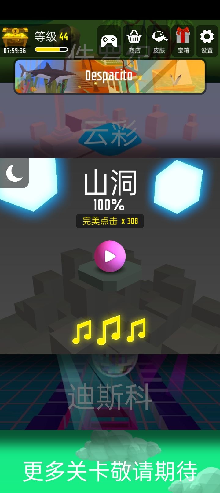 2.不求最虐,只求更虐;游戏关卡不是那种打一关解锁一关的模式,但是难度是升序的,这种模式有什么好处呢,你发现第二关有点难过不去的时候去玩玩第三关,然后你就会发现,还是第二关简单,然后拼了老命的滚去第二关突破自己再来玩第三关,反正制作组就是要告诉你,这游戏我们自己都不一定能通关,但就是要这个难度让你们挑战自己(滑稽);可以看出制作组真的是用心了,每一关的画风都不太一样,音乐自然也不同,玩法就一种,益智又虐手;