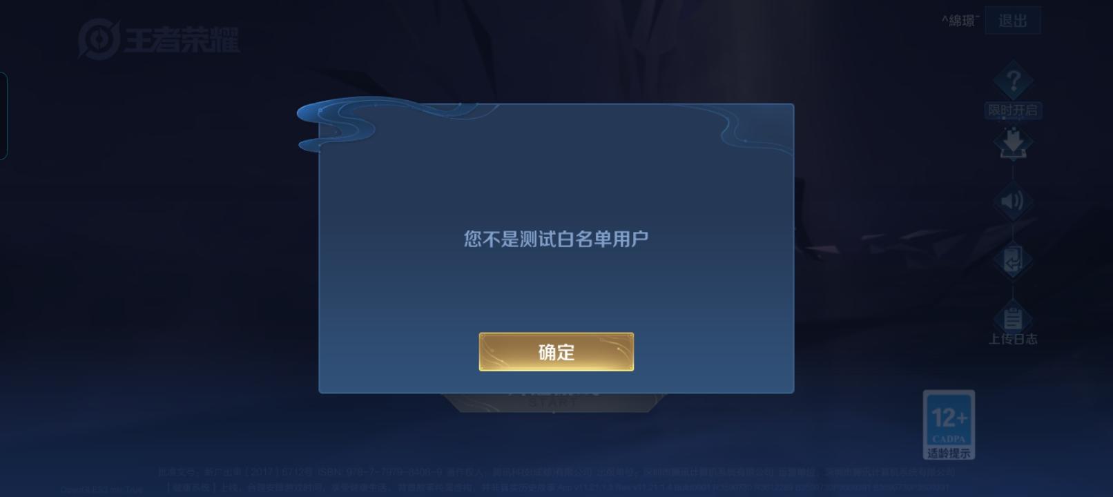 王者荣耀体验服测试服申请加入白名单成功