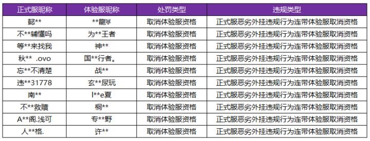 9月1日体验服违规处罚公告