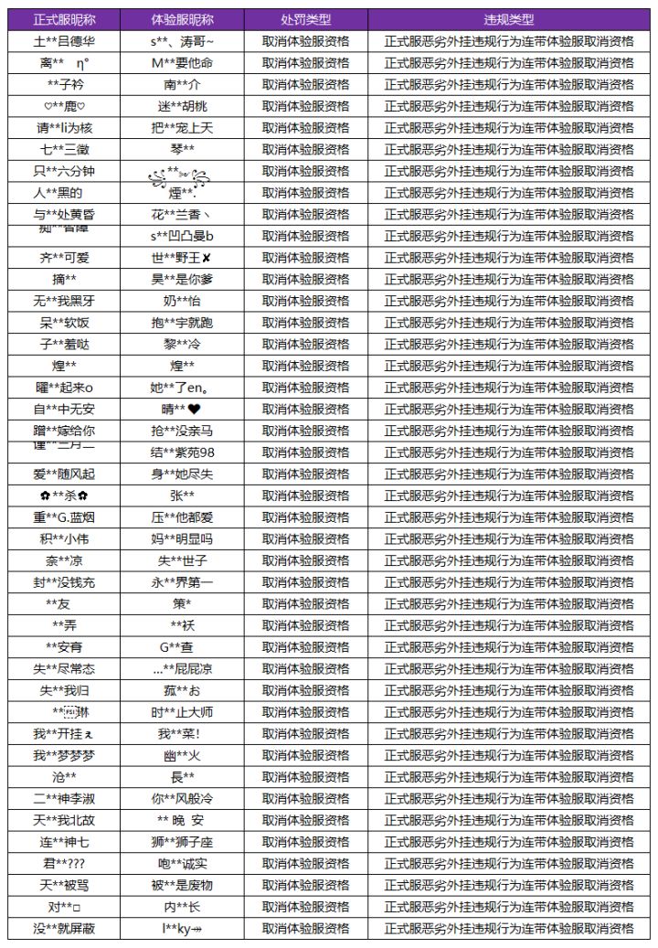 近期,狄某将对于在体验服使用外挂的问题进行专项打击。