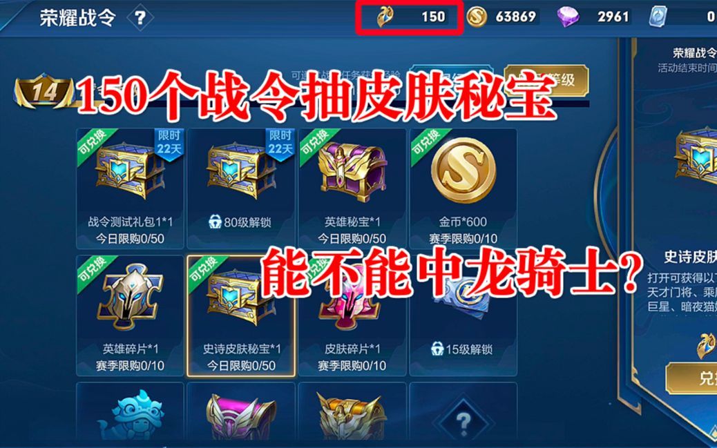 集齐了150个战令,来抽皮肤秘宝啦,能不能中龙骑士?