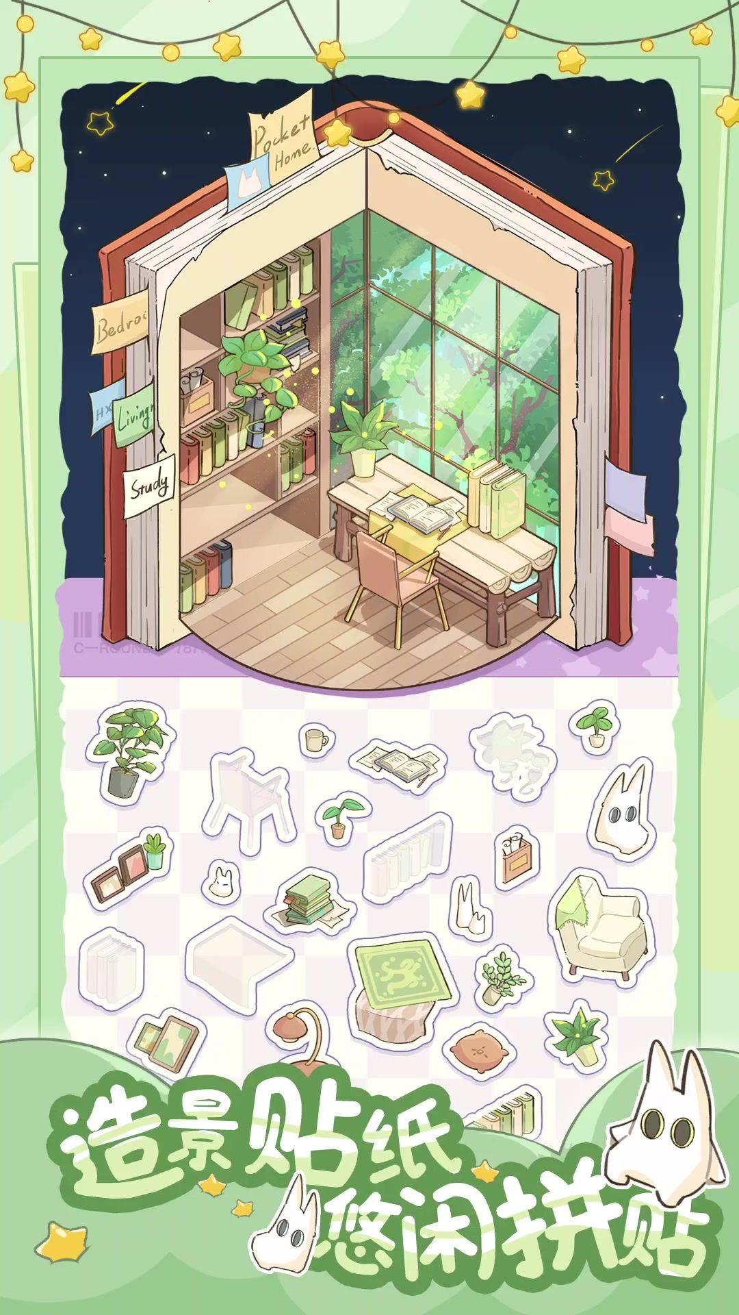 超治愈系贴纸造景!搭建兔兔的三层小别墅!无任何时间关卡机制!