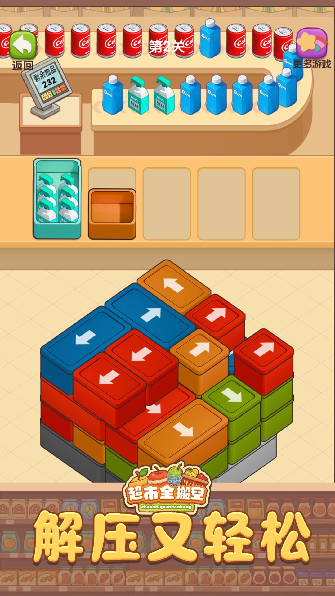 【超市全搬空】休闲解压益智!超好玩的堆叠消除单机游戏!