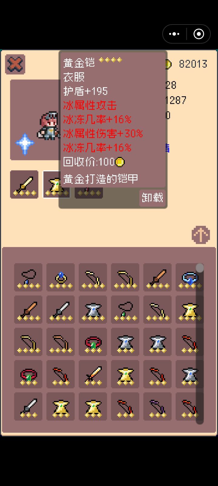 狂加冰冻机率和伤害,敌人根本无法攻击,注意装备选择自带冰冻伤害属性的,刚进游戏将钻石用于升级天赋中获得钻石加成,普通关卡玩几关了就可以去无尽了,钻石获得很高的,玩十来关都有好几千了。升级天赋4星装备。普通装备合成四星,保留四星冰冻装备。钻石洗属性,全身装备冰冻机率超80%了,敌人基本每回合都被冰冻。可以无脑闯关了!