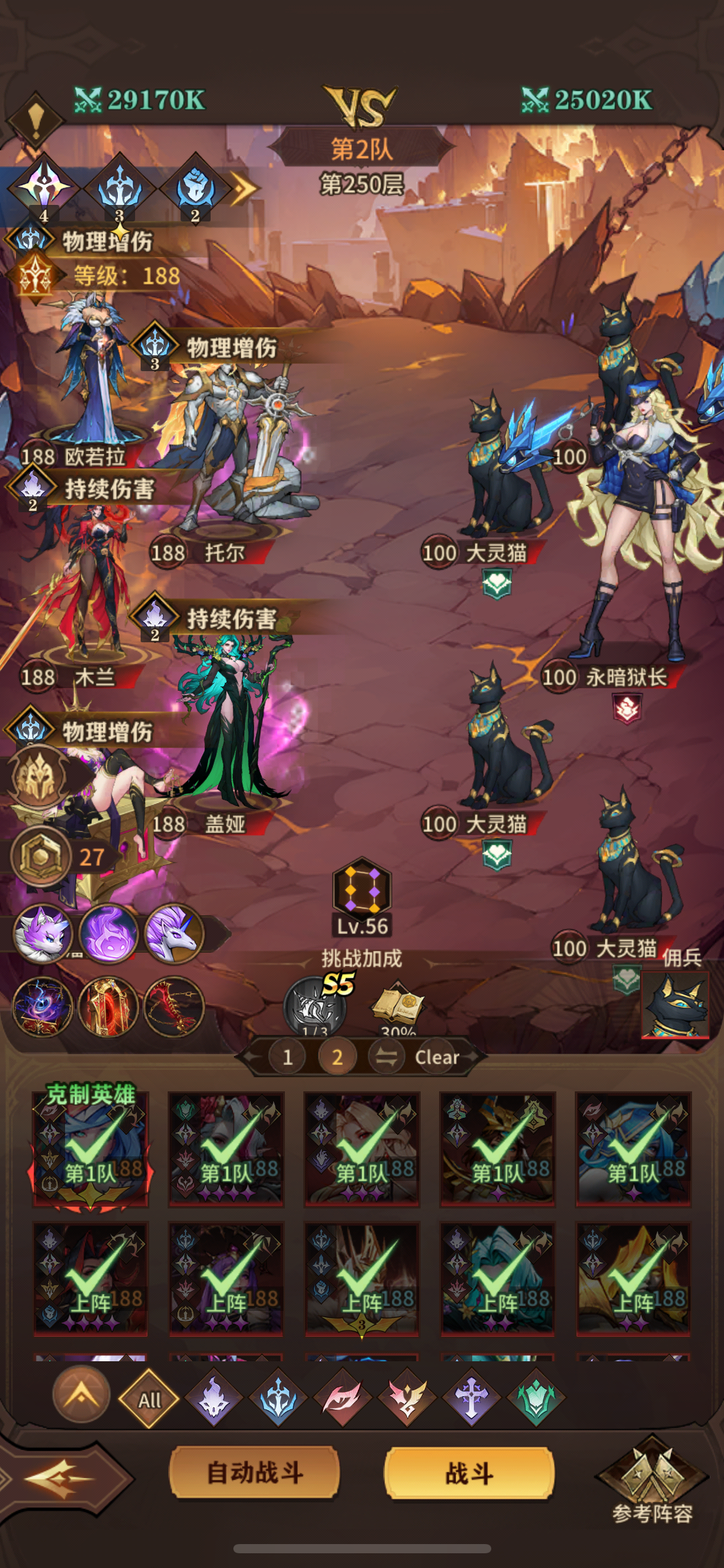 250地心过不去啊,该怎么配队啊,求大佬指点,我目前阵容,2队总是差点血#噗噜噜实验室 @游戏懂哥