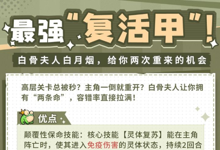 亲爱的冒险者:总会被BOSS秒杀!哪怕小鹿都复活不过来!每次关卡就差一次攻击就过关了!别怕,版本最强复活甲---白骨夫人白月烟来帮你!(本攻略仅供参考,实际内容以游戏内为准,最终解释权归《伙伴弹途》官方所有)=关注我们=欢迎勇者们加入官方玩家群~官方玩家群:939052488公众号:伙伴弹途#伙伴弹途 #新手攻略 #游戏攻略 #今天游戏圈发生了啥