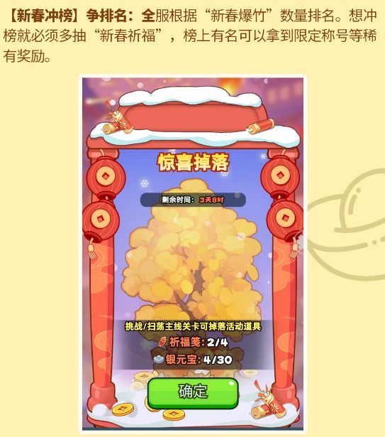 亲爱的冒险者:全新春节活动即将上线!爆打年兽、脚踢小怪,同步参与「瑞雪迎春」活动副本奖励惊喜连连完成,春节任务还可领专属春节称号!本次活动核心就三件事:攒元宝、抽祈福、换奖励!(本攻略仅供参考,实际内容以游戏内为准,最终解释权归《伙伴弹途》官方所有)=关注我们=欢迎勇者们加入官方玩家群~官方玩家群:1079520843公众号:伙伴弹途#伙伴弹途 #新版本 #版本更新 #春节活动