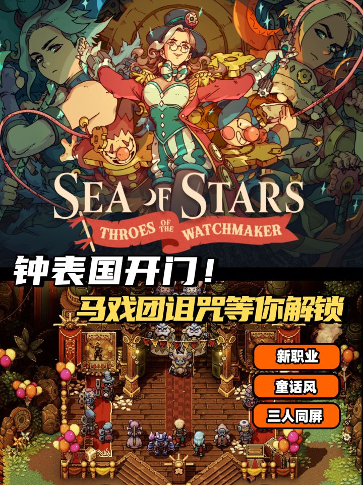 《星之海》作为复古JRPG爱好者心中的白月光,这次推出的免费DLC《钟表匠之祸》,我觉得完全可以看作是一部内容完整的后传,甚至比一些收费资料片更有诚意。📅 上线时间:2025年5月20日💰 售价:免费(需要本体游戏)⸻🎭 剧情设定:异界马戏团 vs 钟表国DLC延续本体结局之后的故事,扎莱和瓦莱蕾进入了一个叫“Horloge”的异世界。整个世界被诅咒的马戏团统治,地图机制、视觉设计都和“