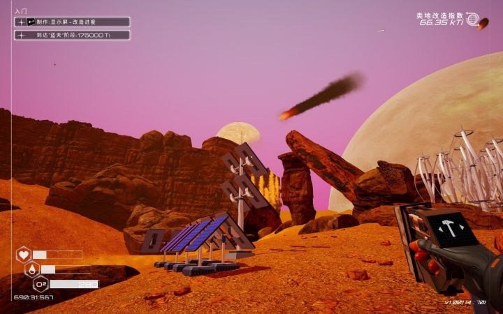 就像我之前展示的图片,这个星球将会因为玩家的改造,从最早的黄沙漫天,慢慢变成适合居住的模样,蓝天、云层,水体、湖泊,藻类、绿植,在这个过程中里你能看到整个星球的变化。