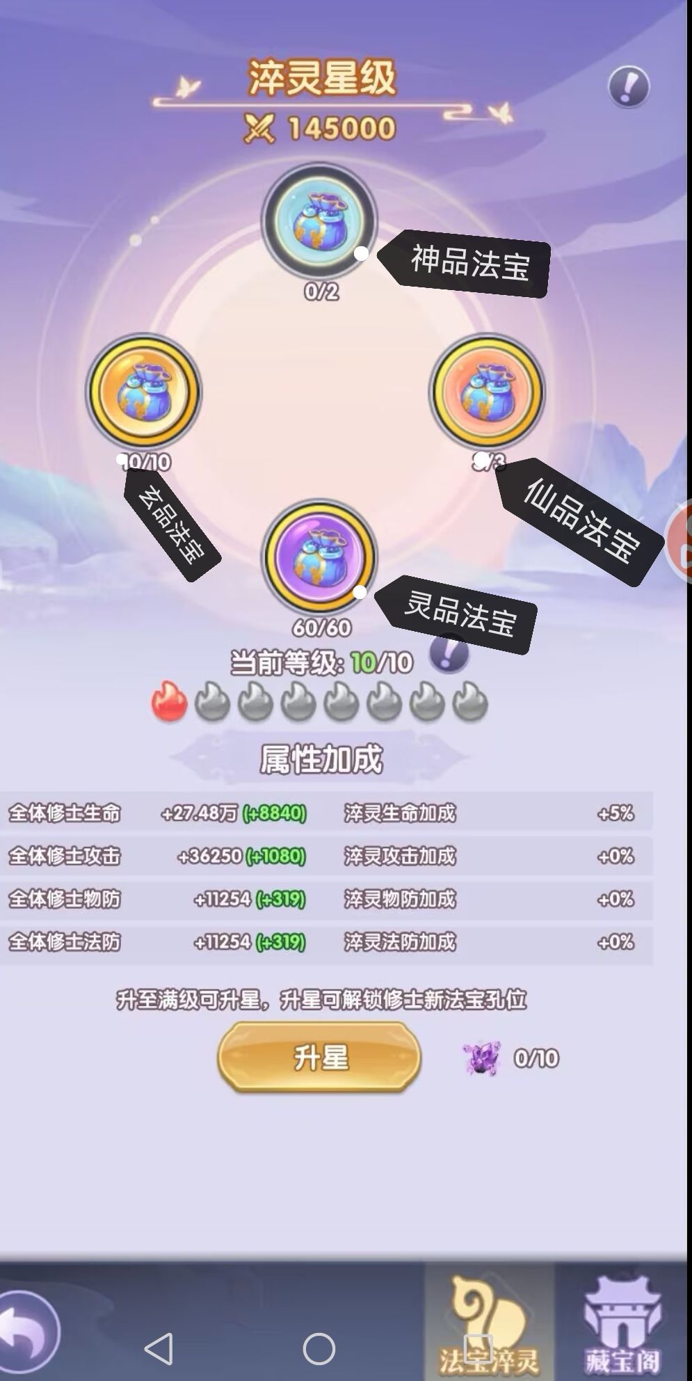 法宝作为《仙逆H5》战力体系的核心枢纽,其搭配和升星直接影响角色的属性上限! 本文为道友精心整理「法宝升星消耗表」,助道友精准规划资源,快速打造跨阶战力。 法宝基础分类 品质分级:神品>仙品>玄品>灵品 法宝种类:攻击型、防御型、辅助型 法宝功能定位:主战型、防御型、功能型 主战型:例如大力符(攻击)、射神车(爆发)、青红珐轮(伤害) 防御型:例如离冥草帽(护盾)、星罗盘(免伤)、金血珠(增加生命