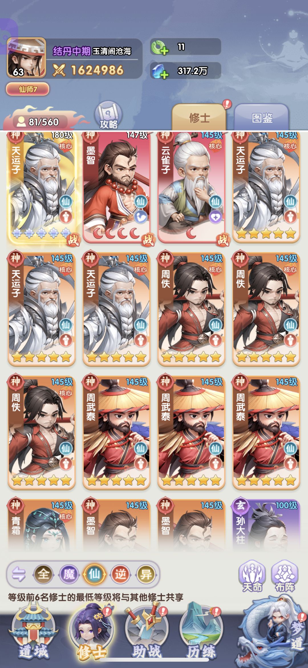 1.神品法宝 神品法宝的培养路线:昆极鞭>射神车>雨鼎>玄星鼎>驱兽圈>离冥草帽 ①昆极鞭第一个搞,直接增加整体的抗爆能力,越战必备。不然后面要是出一个大招贼暴力的古神,说不定一个大招就给你秒了。无论多大的伤害,单次最多只能打到40%的伤害,这就是机制。卡牌游戏,机制大于数值! ②射神车和雨鼎,一个增加伤害输出,另一个减少伤害输出,相对。通用,输出修士就带射神车,辅助和控制修士就带雨鼎完事。 不过