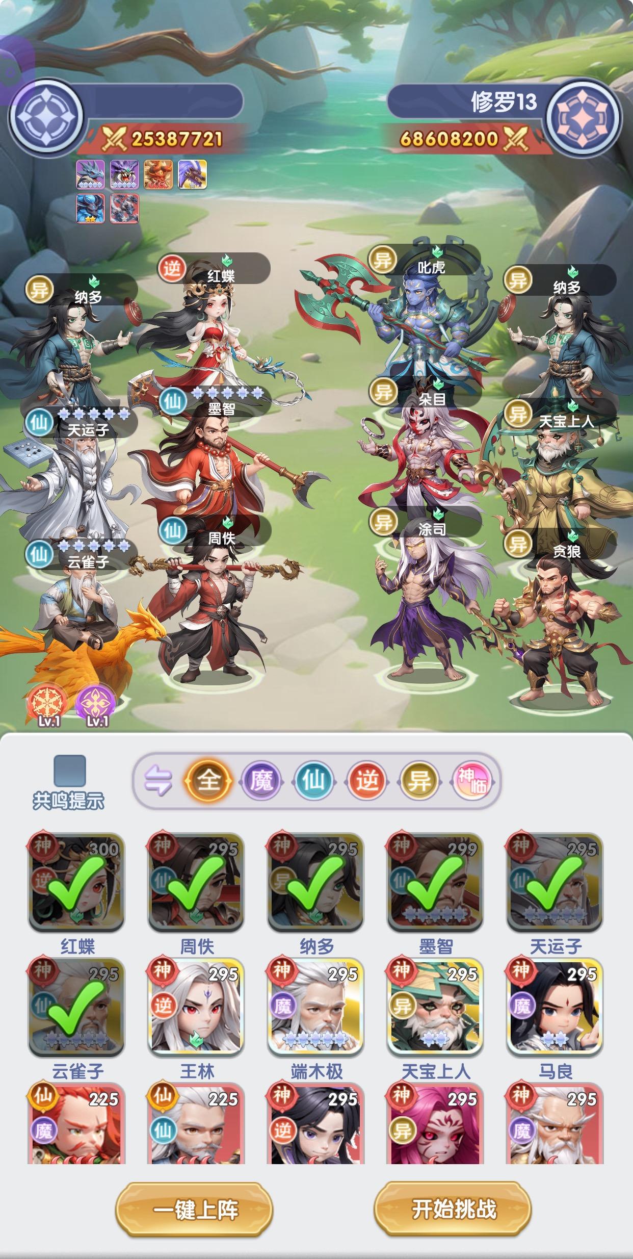 一:刷图篇白嫖玩家,因为没有充值,所以要到20级后才能有“跳过”战斗。对于白嫖玩家,过图耗时间。看下图:1.进入挑战,2.在游戏右边有个个人中心框,点切换账号,就返回了登录界面,在登录,这样这关就跳过了,可以快速通关到第一个千抽活动。二:千抽篇1.阵容(白嫖玩家可以玩的阵容有藤一队、火烧队、拓森队是目前强度还可以的队伍)藤一队:藤一(主c)、马良(副c)、云雀子、纳多、默智、(古帝天魔红