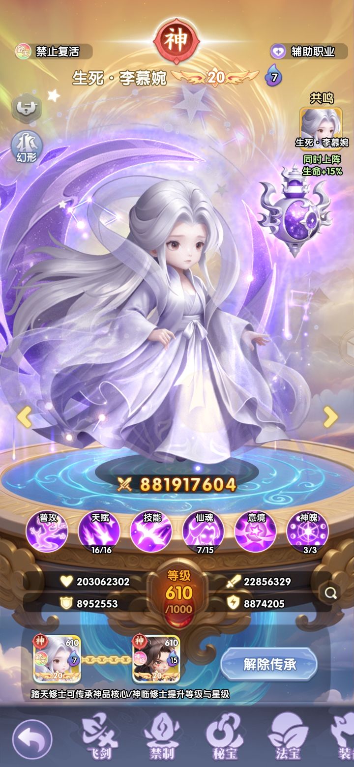 前言:踏天婉儿出炉,1.确实从人物造型上,踏天境的修士都挺好看的,2.从实战效果上,还是很强势的。一:人物招募招募根据每个魂的需要的本体数,按照神临招募贴的方法计算本体的基础《参考神临招募贴方法对应踏天修士的本体数》二:人物技能神魂技能:神罚之眼:提高了(王林,古神王林,踏天因果追击的概率),更加巩固了踏天因果的主c地位意境技能:婉儿单体技能减怒,治疗转化,和婉儿技能击杀死亡,会永