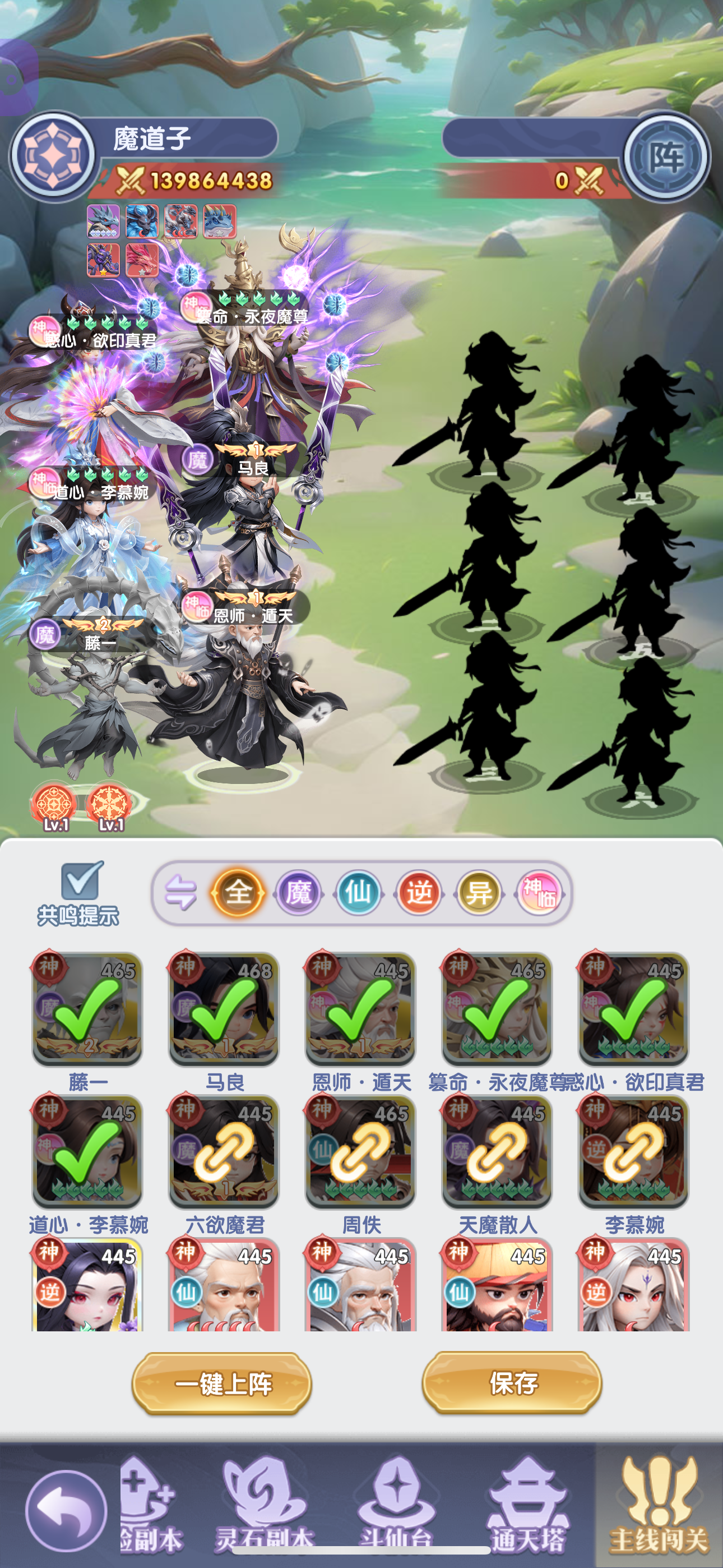 终于到榜一了。给大家看看阵容。搭配 #仙逆h5 #最强零氪 #游戏日常