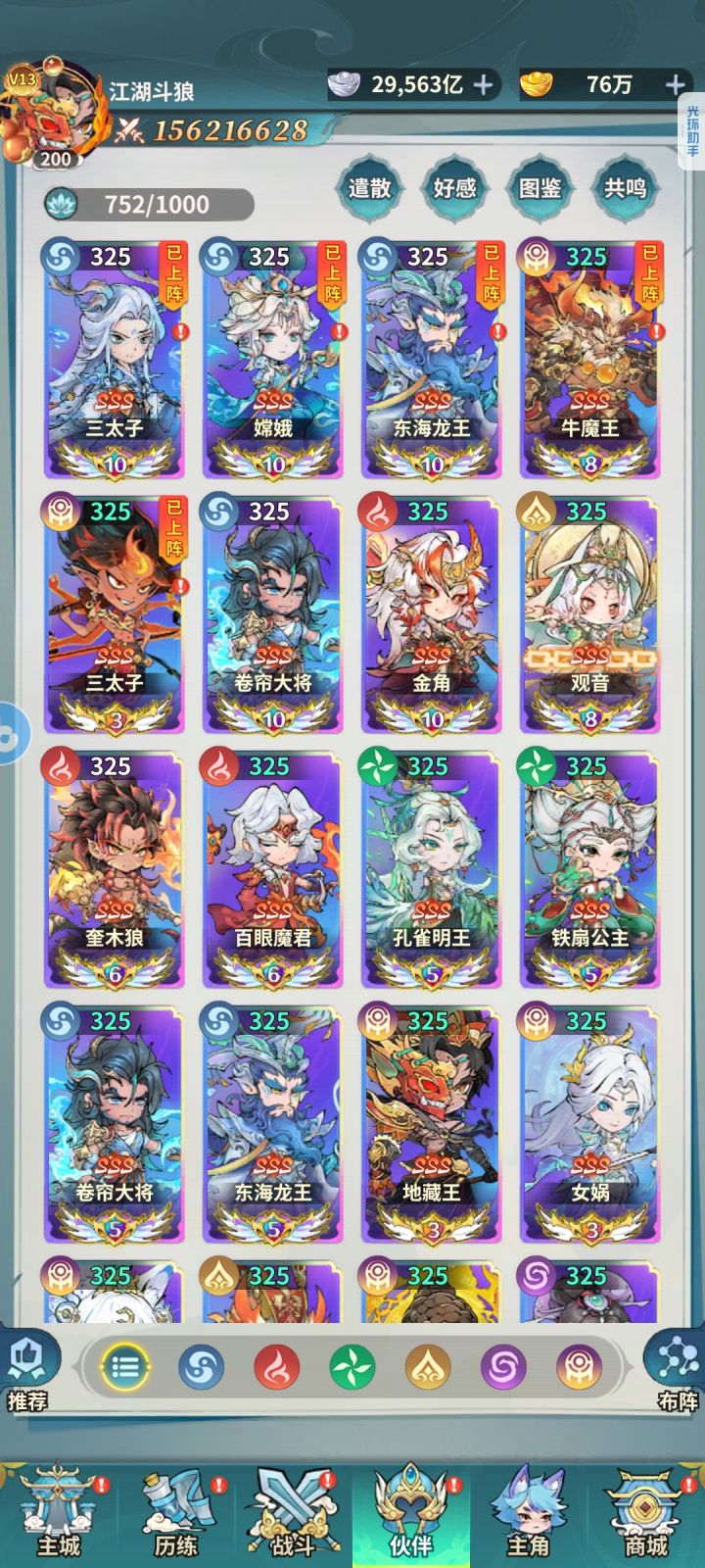 别看这游戏用哪吒做广告游戏里他啥也不是,火队就金角和黄眉优先培养。看图二就理解了。火队玩的第三天