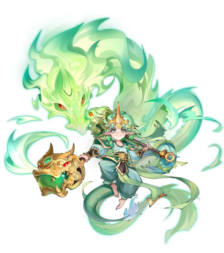 苍龙星宿自古以来便被人们所敬畏,不仅是星宿之首,更是一位拥有着非凡力量的神灵。这位苍龙星宿的守护者,自宇宙初开便已存在,他的使命是维护宇宙的平衡与秩序。在战乱动荡中,黑暗势力蠢蠢欲动,意图打破星辰秩序,将混沌带入世间。亢金龙感知到这一危机,毫不犹豫地从星宿中降临凡间。面对来势汹汹的邪魔,他轻敲双锤,霎时间,龙角上金光大盛,一条金绿色的龙魂应声而出,环绕在他身边,形成了一道坚不可摧的防护壁障。在龙魂