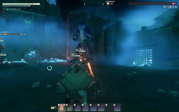 虽有引导,但较弱(往往指示的位置需要一定的时间或方式才可抵达,正如开局的铁匠任务),游戏更趋向于玩家自由探索,从安置祭坛开始,以物资打造属于自己的家园,这里移速上游戏设置的会较快,虽有耐力条限制但非常利于玩家跑图(爬墙也会消耗),相对慢热节奏下通过些许细节就可以看到后续的各种玩法,职业养成、别野建造、“地灵人杰”、雾气探险等,这也在游戏中一一实现了,但玩家也千万要小心敌人的侵袭与各种地形杀,死亡掉落机制值得注意。