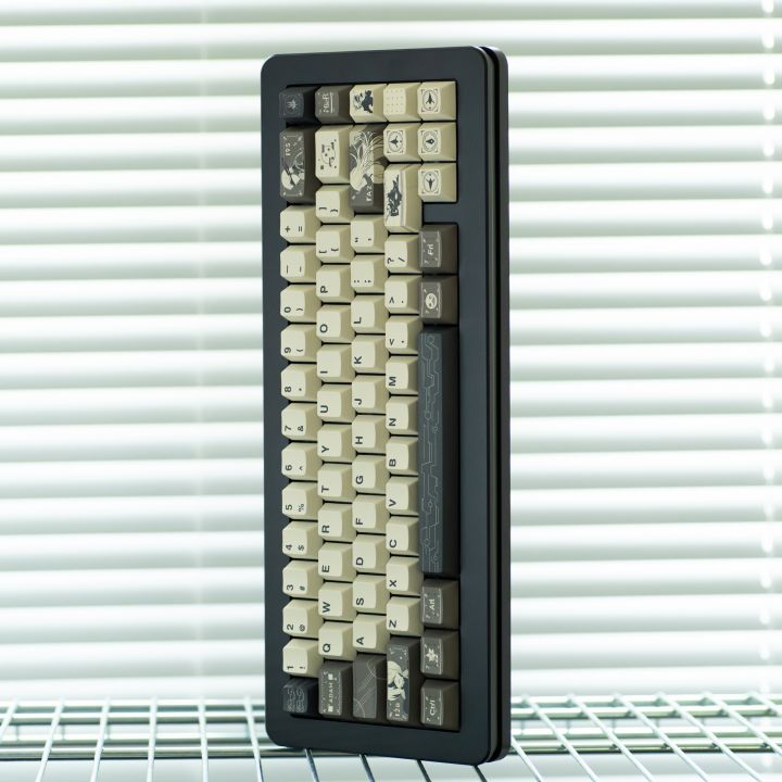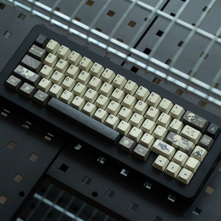 ⌨「尼尔机械纪元·遗物回响」键帽,把废墟战场搬上桌面!▫末日色谱泛黄米白主键区+锈蚀棕功能键+废墟黑字符,2B眼罩掠过般的文明切片美学。▫战痕图腾Shift键蚀刻YoRHA人造人剪影,Backspace篆刻9S数据流,方向键复刻游戏坐标网格,连空格键都暗藏机械纪元符文!▫军工工艺五面热升华还原武器磨损质感,PBT抗打油如2B战斗服,原厂高度适配高速操作。“当指尖敲击迸发RGB光效,便是寄叶部