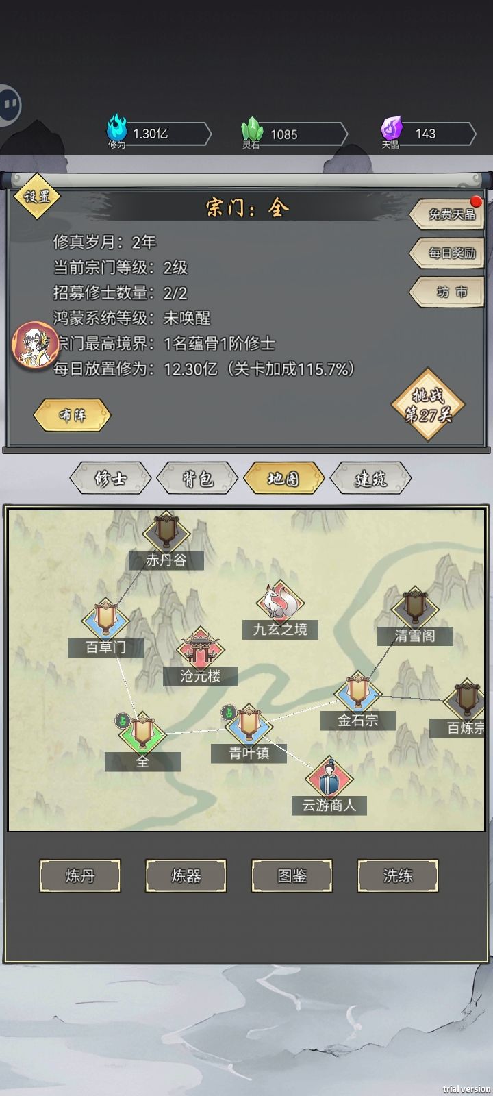 无氪金无强制广告,合成修仙+世界探索+宗门建造,单机修仙模拟